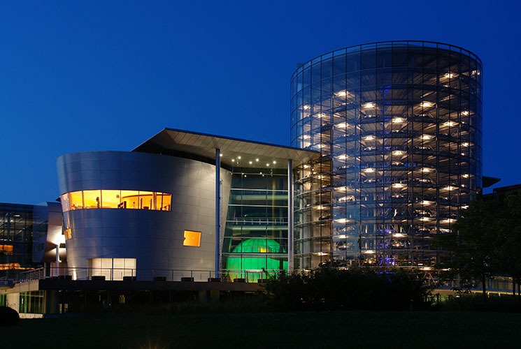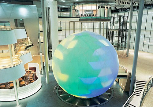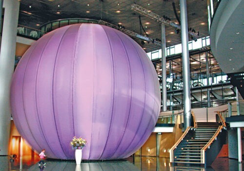 Eine der Hauptattraktionen im Eventbereich der Gläsernen Manufaktur Dresden, in der Volkswagens Luxusklasse-Modell ‚Phaeton‘ produziert wird, ist das Kugelhaus.