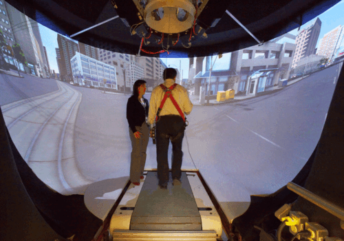 CEAL ist ein riesiges unterirdisches Forschungslaboratorium, welches unter Toronto Rehabʼs Universitätszentrum gelegen ist und das das Kernstück des iDAPT-Zentrums für Rehabilitationsforschung darstellt. Wir lieferten das Hohlkehlen-Sichtsystem für das Streetlab – eine immersive virtuelle Umgebung mit einem Laufband und einer rollenden Straße auf einer Bewegungsplattform.