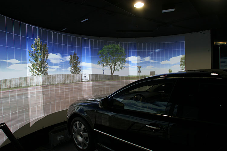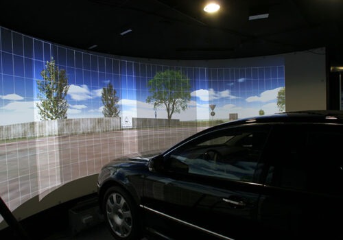 Update und Integration eines Visualisierungssystems mit 3D-Geometriekorrektur und Blending für Echtzeit-3D Grafik und einer fünf-kanaligen 180°-Projektion für den VW Phaeton Fahrsimulator.